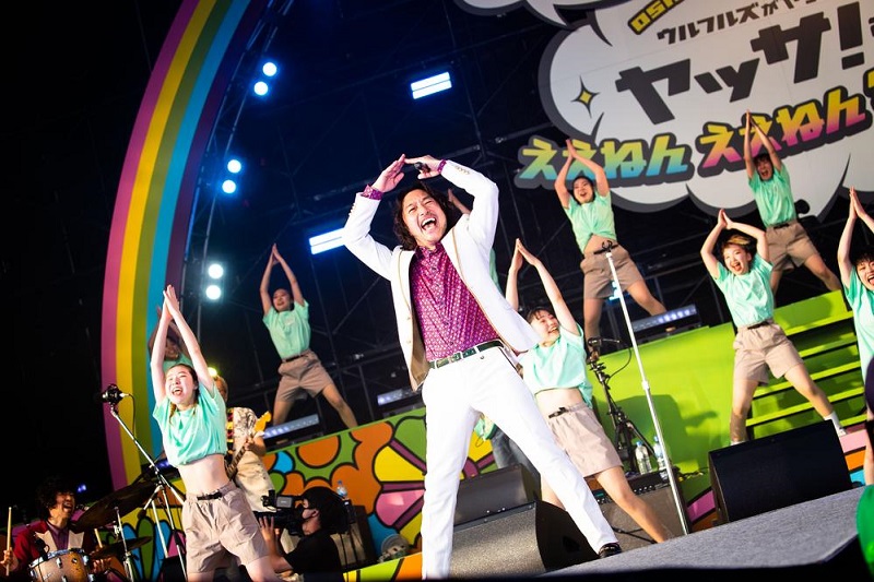 此度のヤッサでは原曲よりアップテンポで、トータスもアップアップしつつ、足でテンポテンポを取りながら、元気満点、天真爛漫のヤッサダンサーズに囲まれて高すぎるマイクに咆哮する。思えば56歳のトータス松本が20年以上前のロックナンバーをキーを下げることなく、むしろBPMを上げて、夏日の中、大汗かきかきコンサートでがなっている。端倪すべからざることだ。なんてソウルフルだ。だからウルフルズだ。ソウルフルズだ!