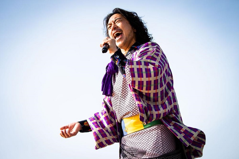 その後はブルースたっぷりの「ひとつふたつ」でトータスの歌唱力を堪能したのち「笑えれば」、「愛がなくちゃ」など往年の名曲で心を涼めたり熱くさせたおれに突如、聞き馴染みのない前奏。ドラムのサンコンがステージ袖にはけていき、代わりにトータスがドラムスローンに座ったかと思えば、謎の衣装で大変身したサンコンがハンドマイクを持ち、ヤッサダンサーズを従えてステージ中央に躍り出る。